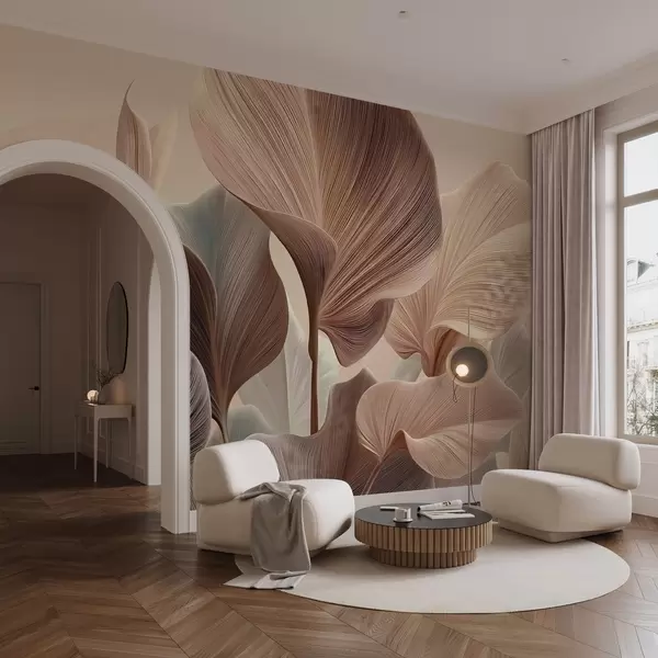 Тапете за зид Елегантни листови у топлим беж тоновима бр. w04549v1