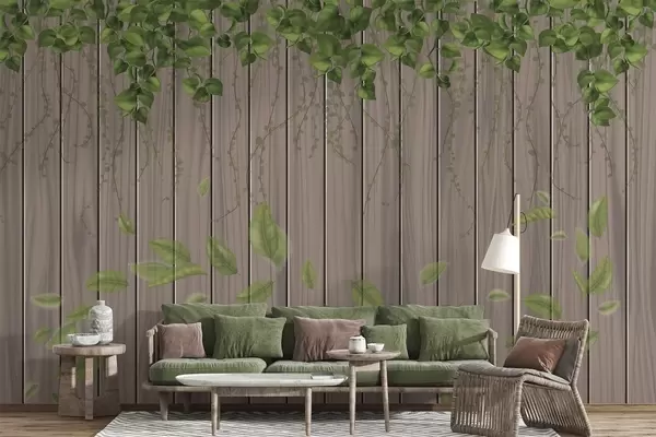 Тапете за зид Имитација дрвених дасака са висећим листовима бр. w04603