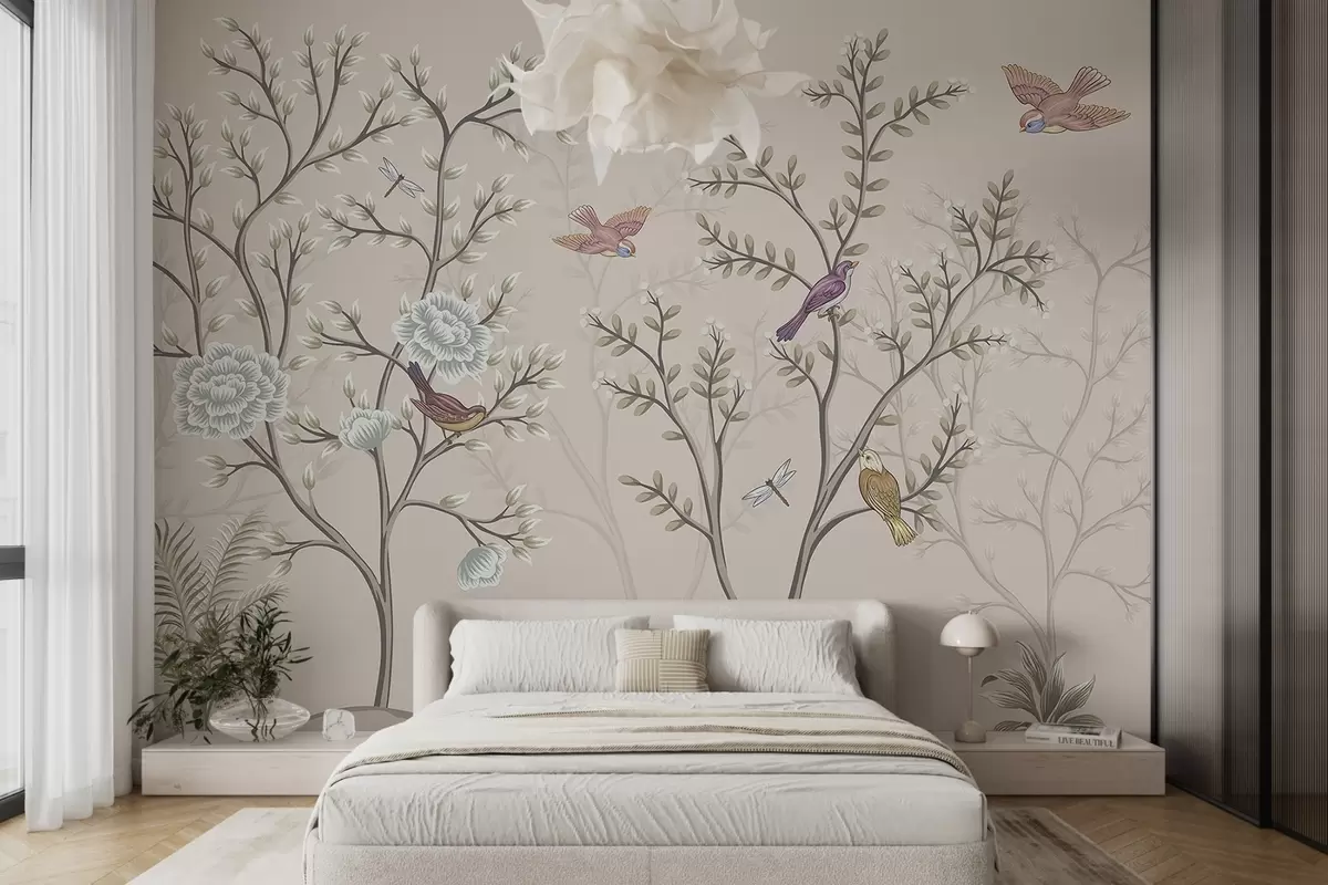 Тапете за зид Дрвеће са птицама и цвећем бр. w04605