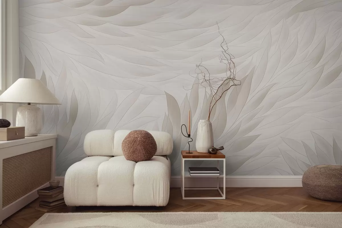 Тапете за зид Таласасти листови у меким кремастим нијансама бр. w04610