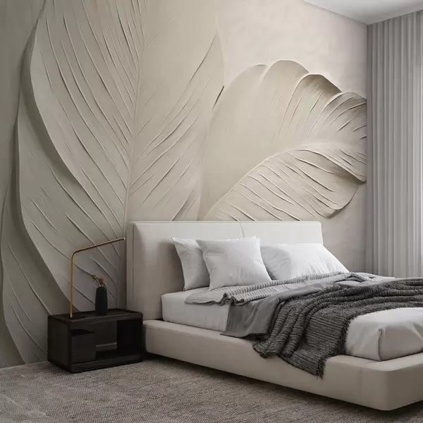 Тапете за зид Рељефни беж листови са меким сенкама бр. w04614