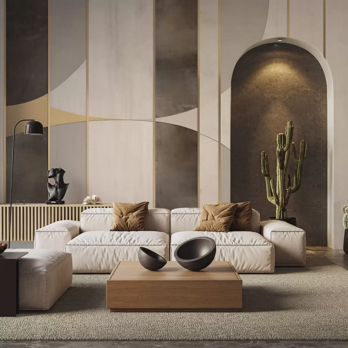 Тапете за зид Геометријски панели са луковима и акцентима шампањца бр. w04616
