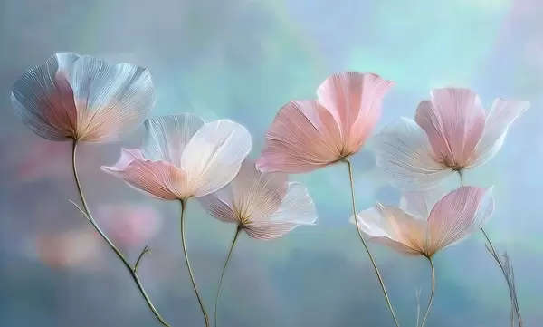 Тапете за зид Прозирне латице у пастелним ружичастим и плавим тоновима бр. w04621