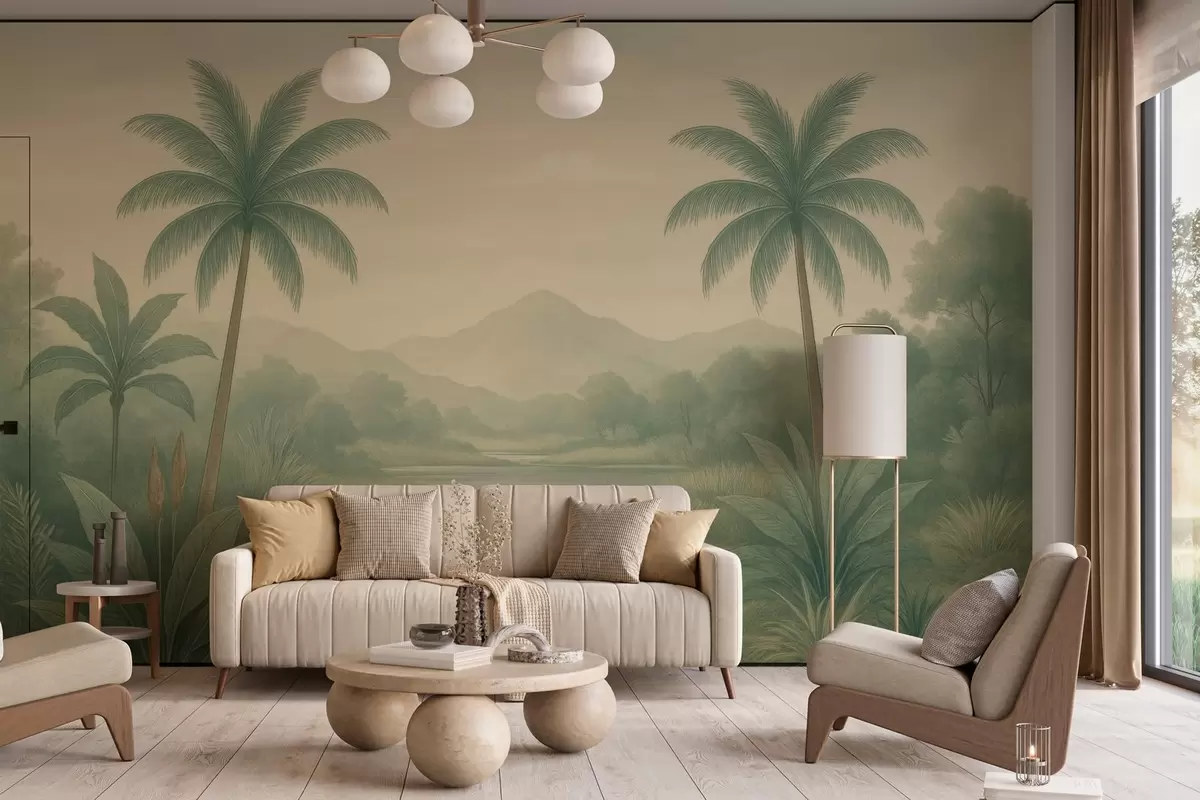 Тапете за зид тропски пејзаж са палмама и реком бр. w04623