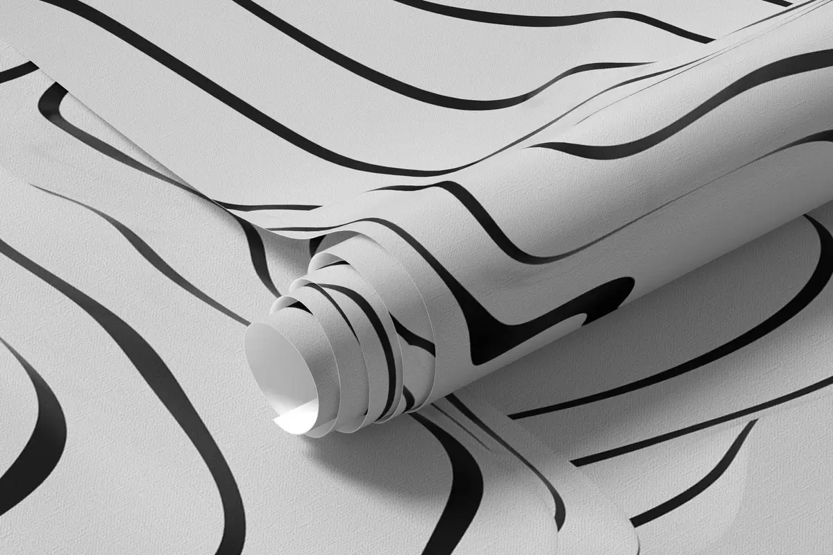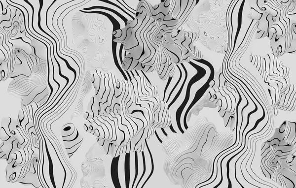 Тапете за зид апстрактни органски облици у 3Д стилу у белим и сивим тоновима са црним пругама бр. w04627