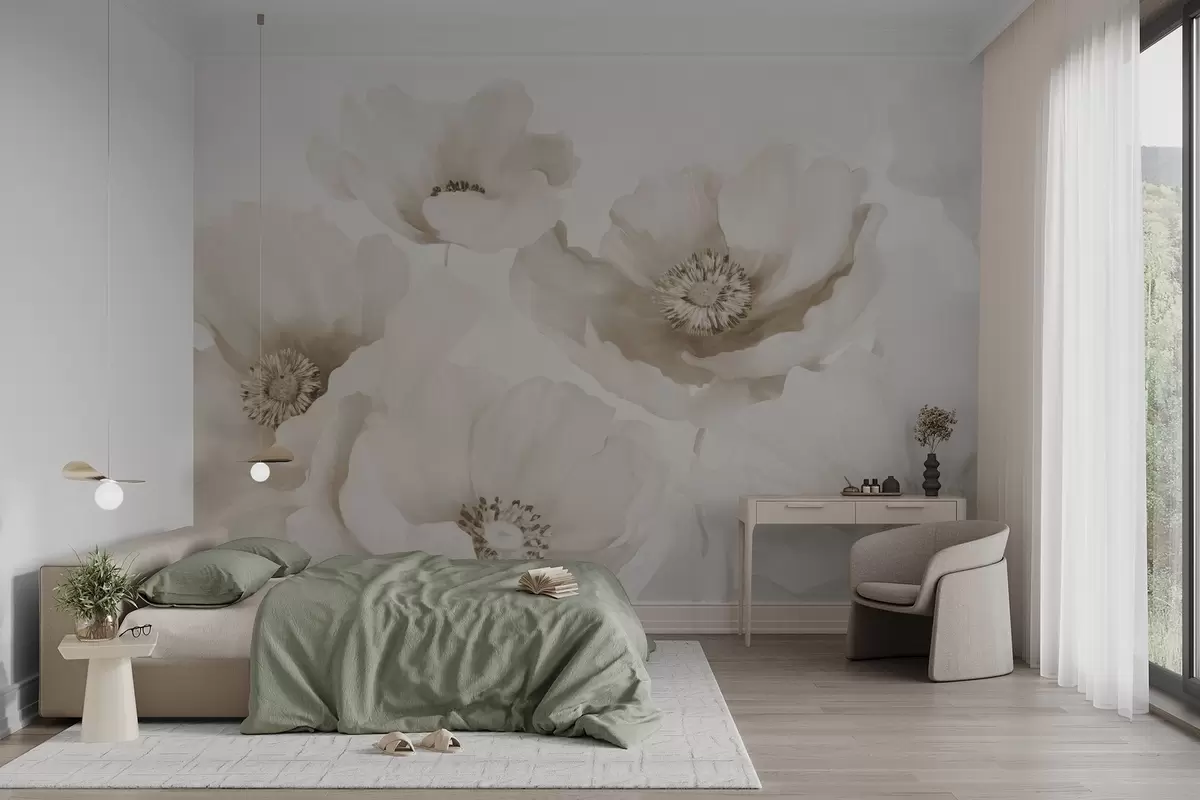 Тапете за зид Макови у нијансама беж бр. w04656v1