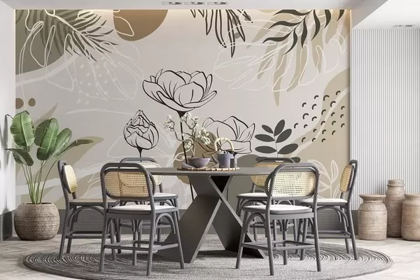 Тапете за зид Апстрактно цвеће и лишће бр. w04662