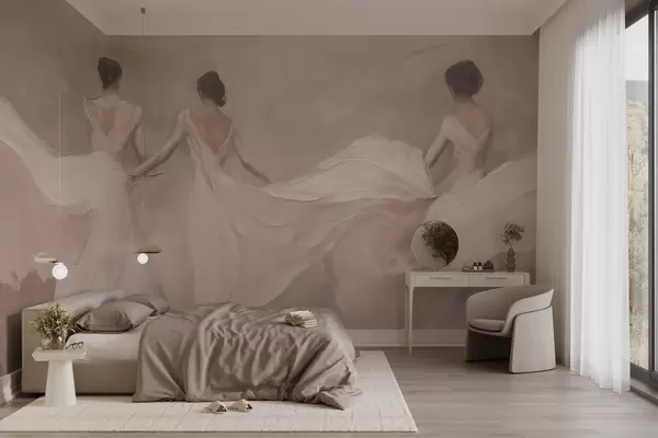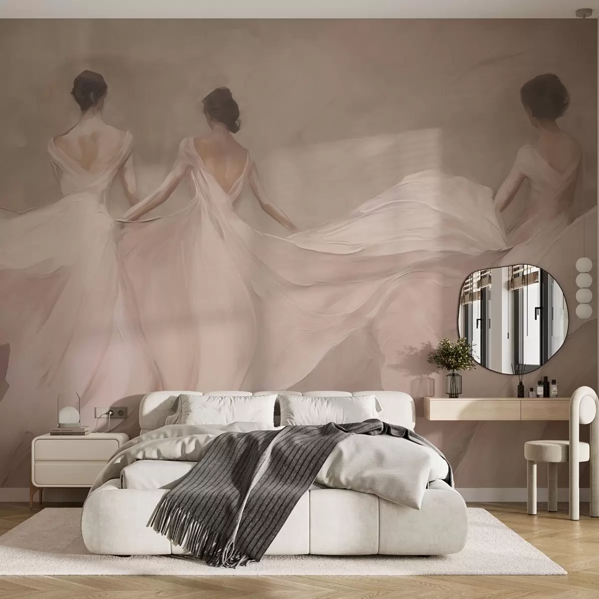Тапете за зид Три жене у ружичастим хаљинама, лепршава тканина, мекоћа бр. w04709