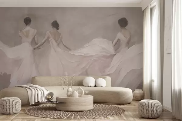 Тапете за зид Три жене у ружичастим хаљинама, лепршава тканина, мекоћа бр. w04709