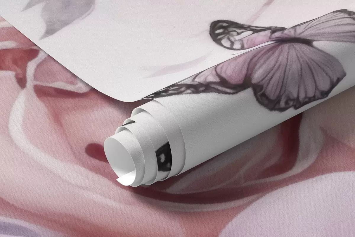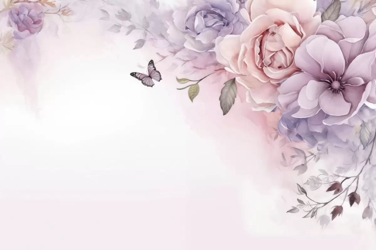 Тапете за зид Нежно ружичасто и јоргованско цвеће са лептиром бр. w04711