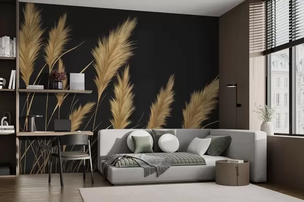 Тапете за зид Пахуљасти класови пшенице на тамној позадини бр. w04734
