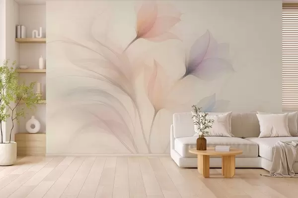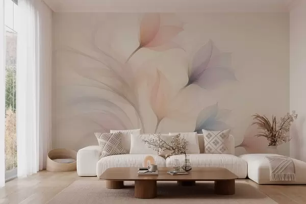 Тапете за зид нежни полупрозирни тулипани на беж позадини бр. w04754