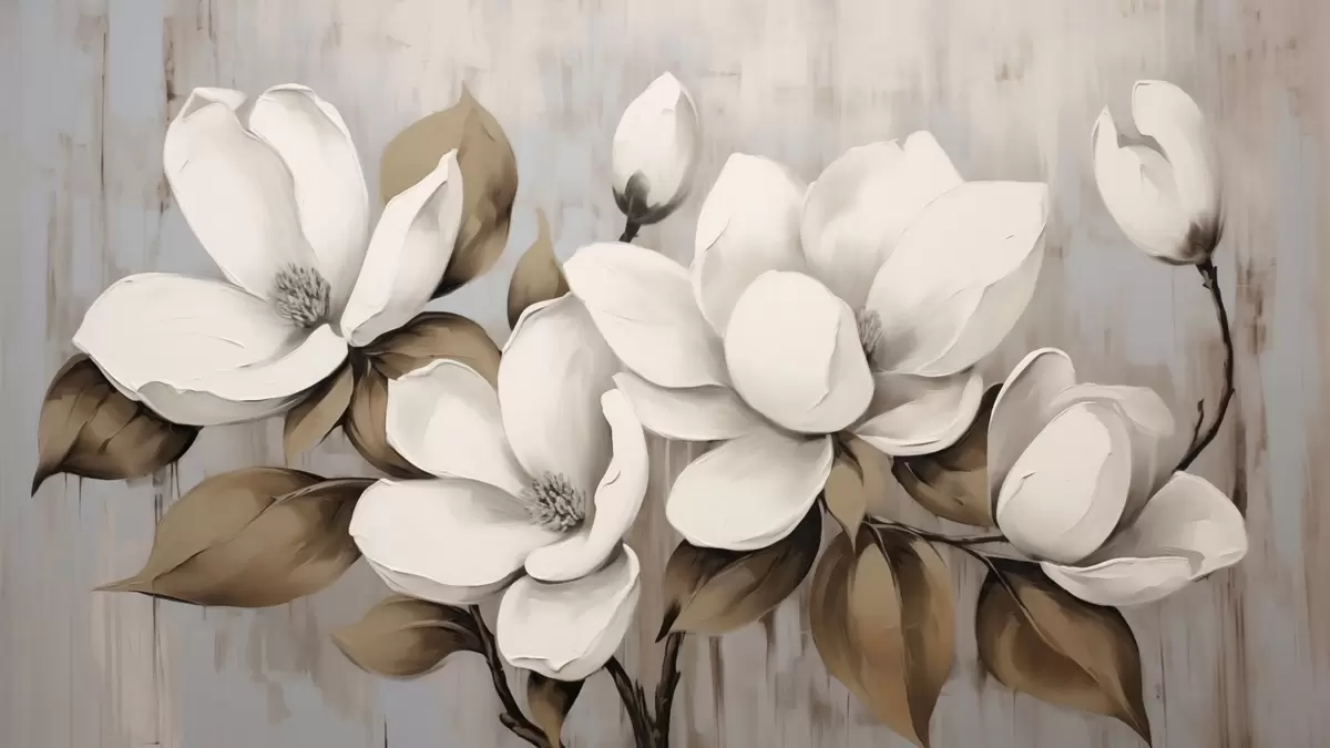 Тапете за зид Велики цветови магнолије са таупе листовима на брушеној позадини бр. w04785
