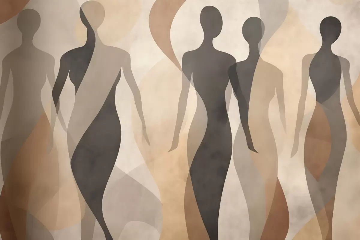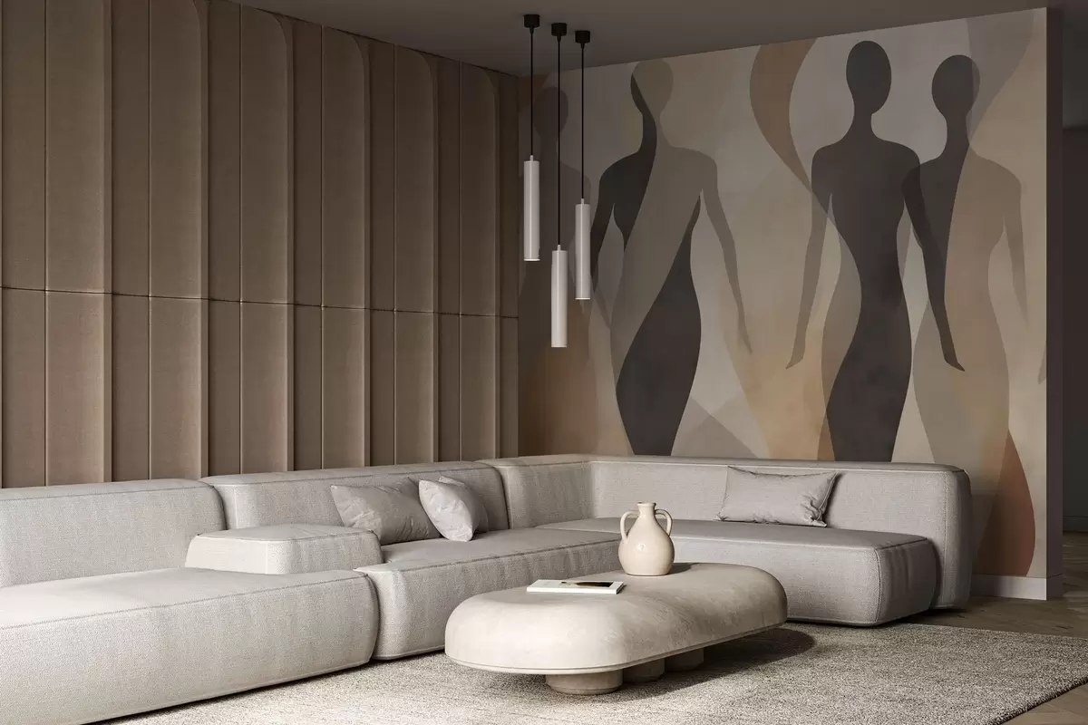 Тапете за зид Силуетне фигуре и меки таласи у топлим беж-сивим тоновима бр. w04787