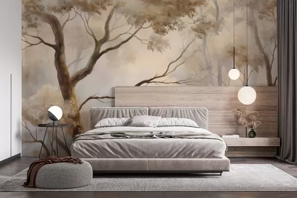 Тапете за зид Шума у лаганој јутарњој магли. Деликатна атмосферска слика у стилу уметничког пејзажа. бр. w04817