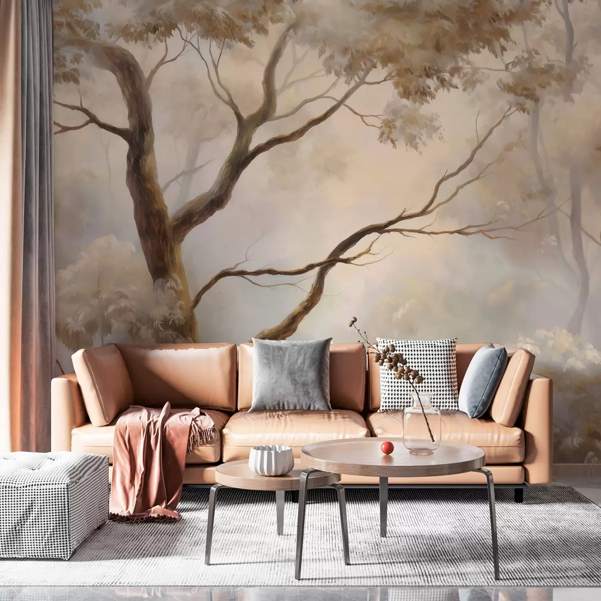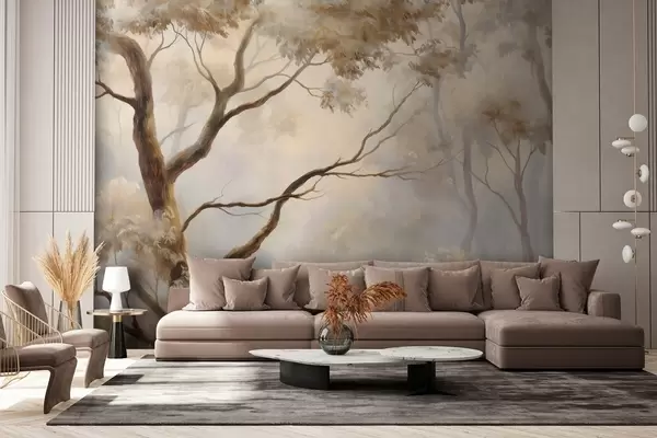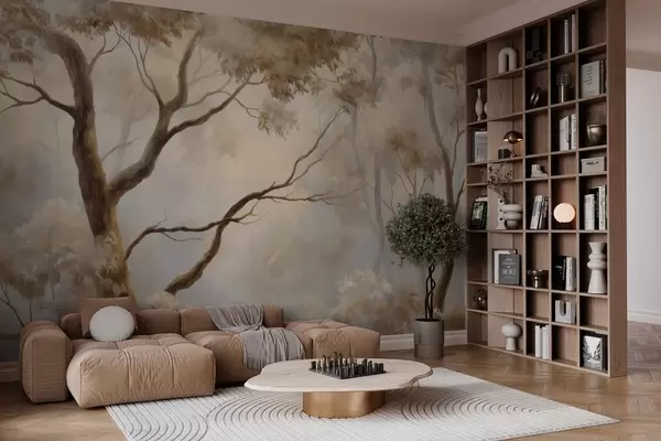 Тапете за зид Шума у лаганој јутарњој магли. Деликатна атмосферска слика у стилу уметничког пејзажа. бр. w04817