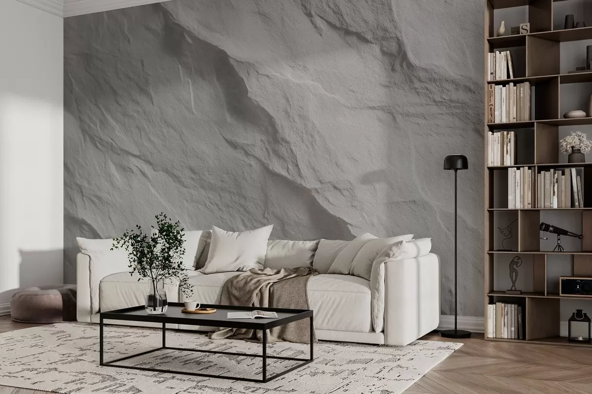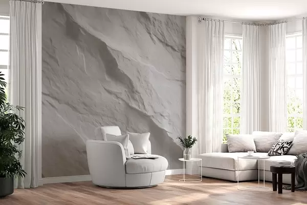 Тапете за зид имитација белог камена у дизајну ентеријера бр. w04818