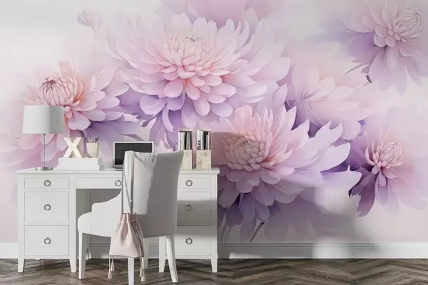 Тапете за зид Бујне акварелне хризантеме на светлој позадини бр. w04832