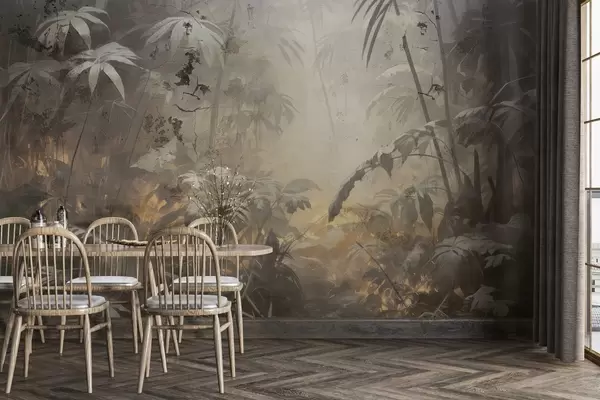 Тапете за зид Осликана џунгла иза гранџ бетонског зида бр. w04833