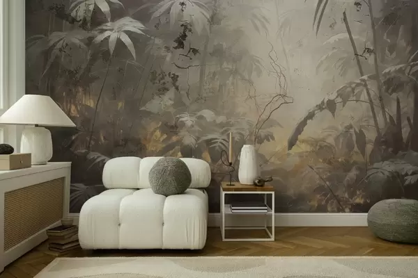 Тапете за зид Осликана џунгла иза гранџ бетонског зида бр. w04833