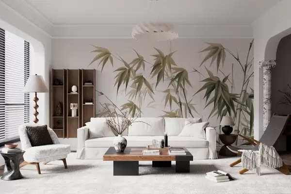 Тапете за зид Бамбус на светлој акварелној позадини бр. w04834v1