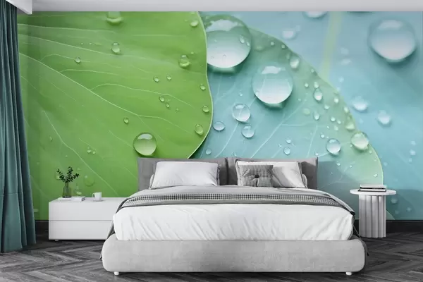 Тапете за зид Капи воде на листовима макро акварел бр. w04838