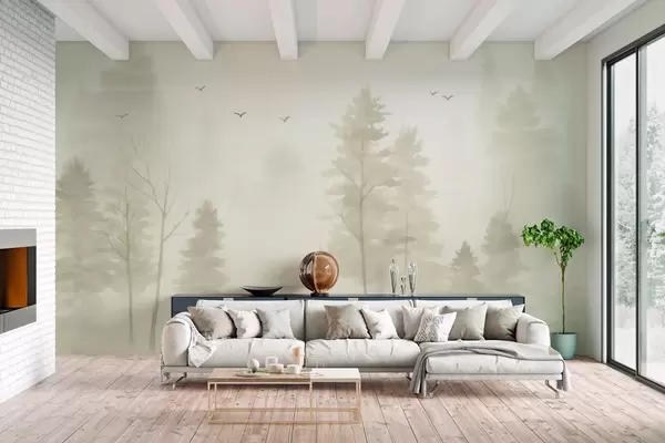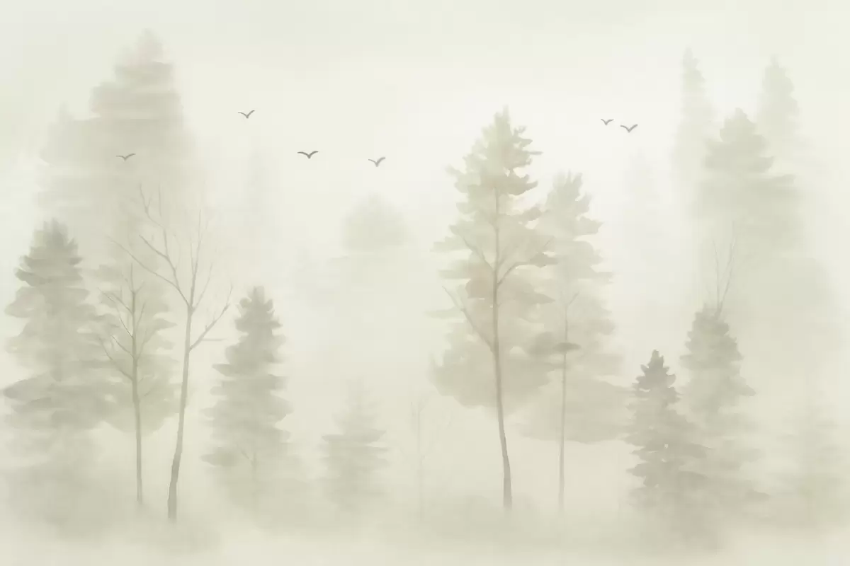 Тапете за зид Ваздушна шума у акварелном стилу у беж тоновима бр. w04872