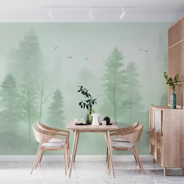 Тапете за зид Ваздушна шума у акварелном стилу у зеленим тоновима бр. w04872v1
