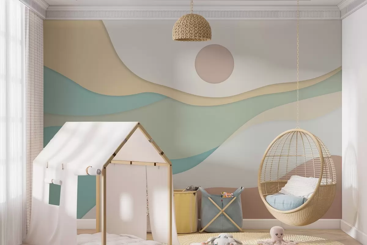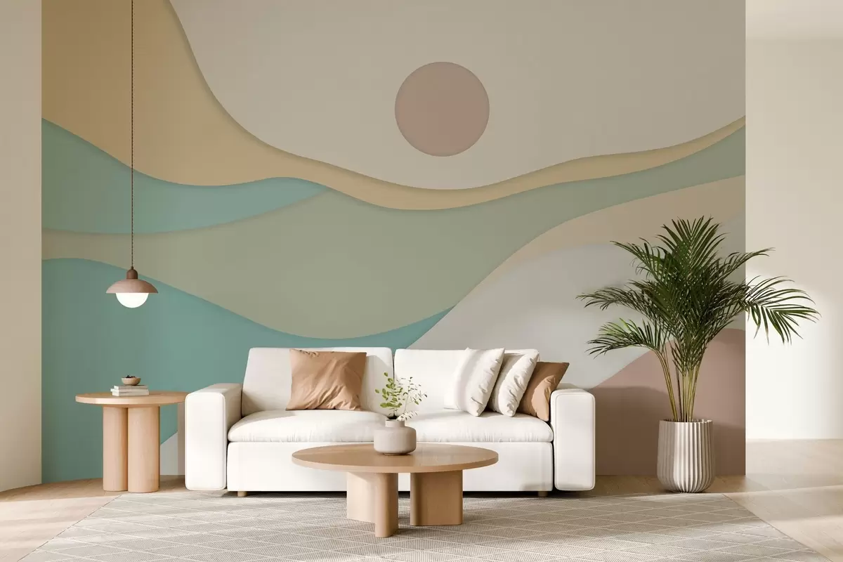 Тапете за зид Минималистичка апстракција са меким, таласастим облицима који подсећају на текуће пејзаже и дине. бр. w04874
