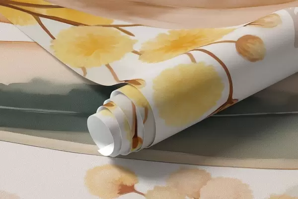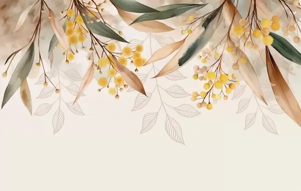 Тапете за зид цветови и листови мимозе падају одозго у акварелном стилу бр. w04880