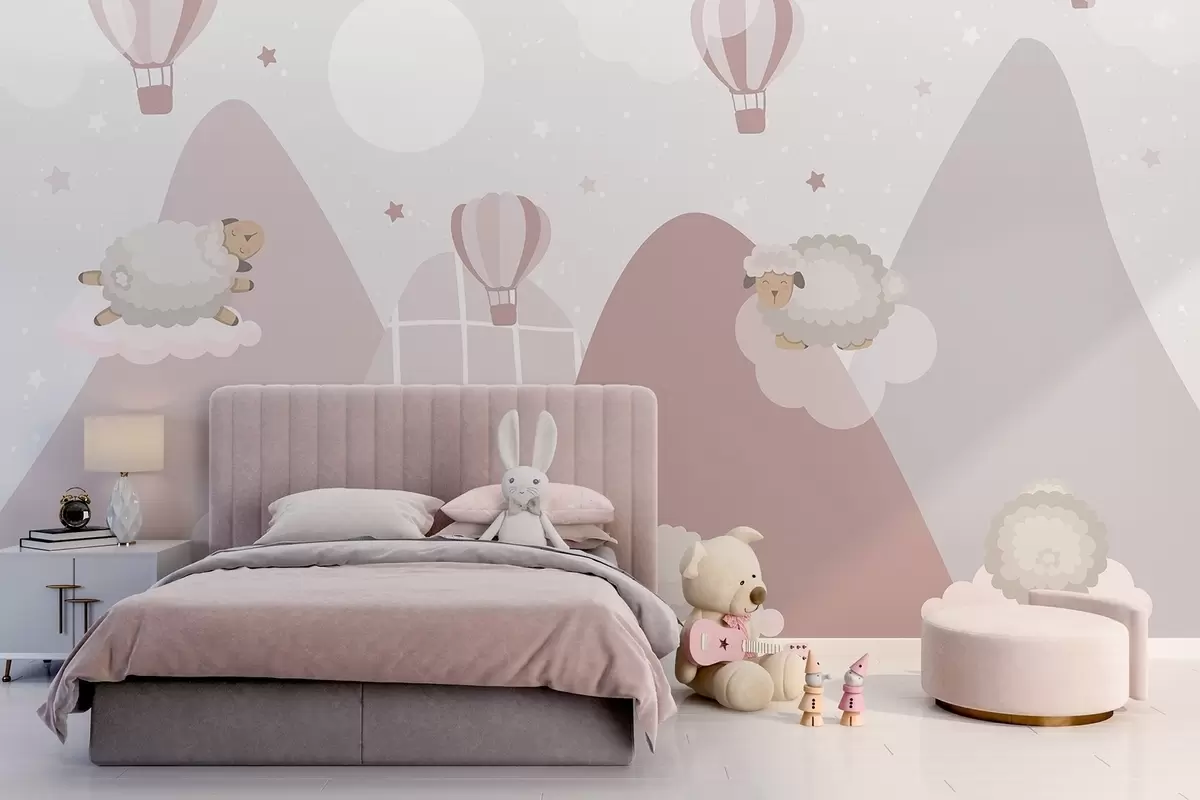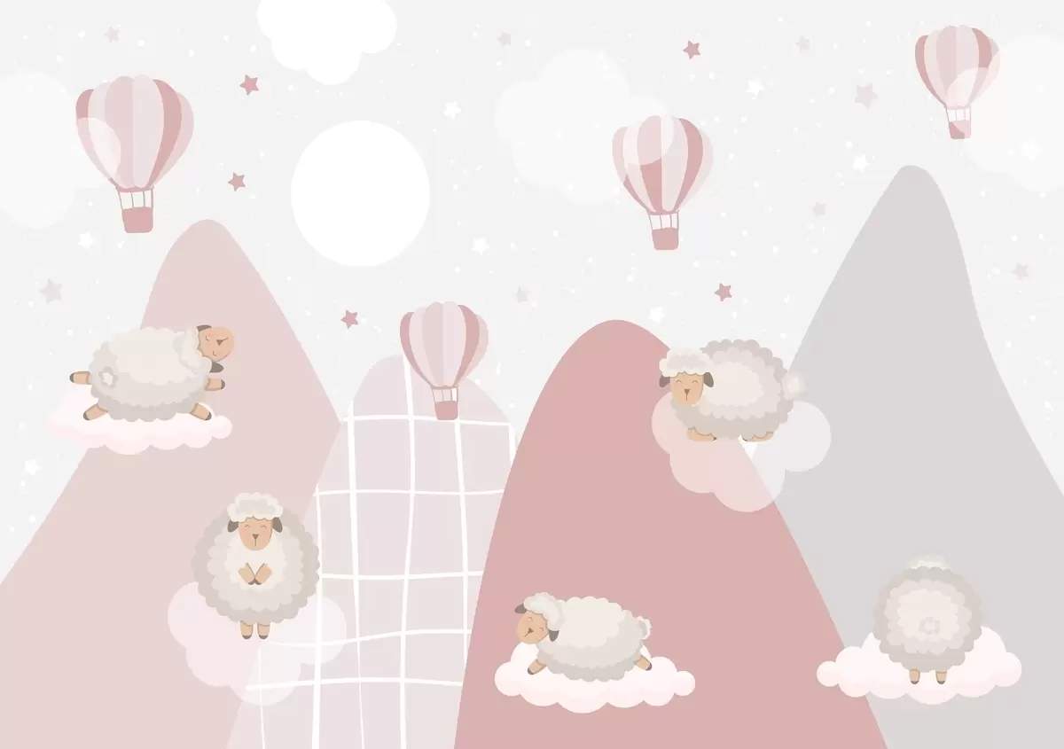 Тапете за зид Спавајуће овце на ружичастим планинама бр. w04932