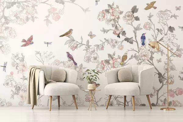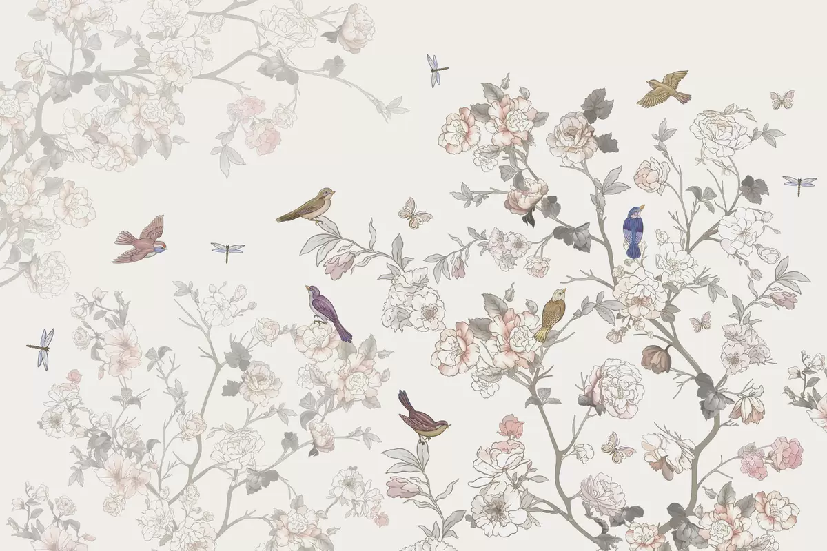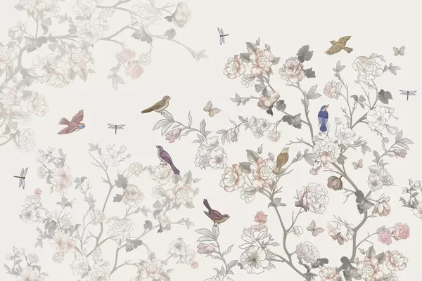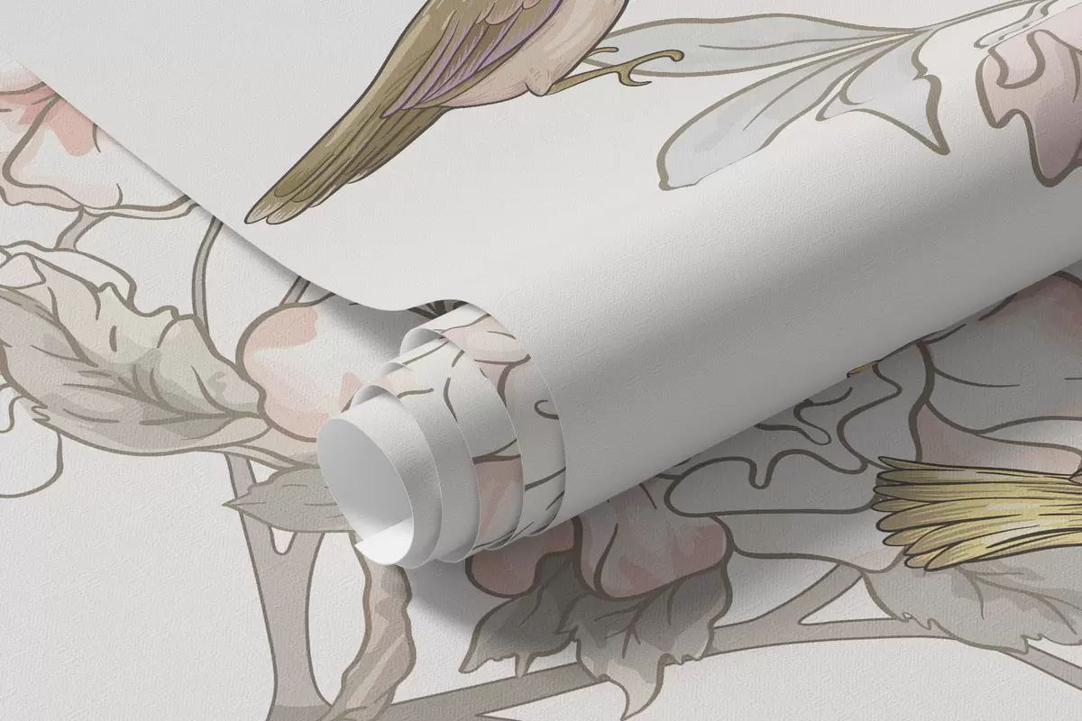 Тапете за зид Птице близу грана са цвећем бр. w04939