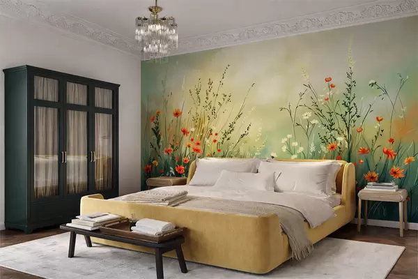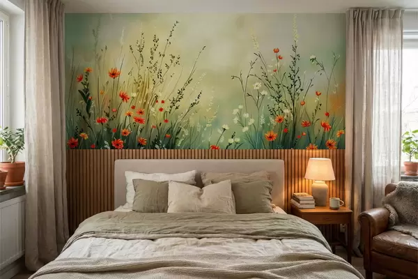 Тапете за зид Ливадско цвеће и траве у меком сликарском стилу бр. w05015