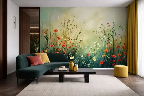 Тапете за зид Ливадско цвеће и траве у меком сликарском стилу бр. w05015