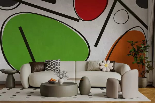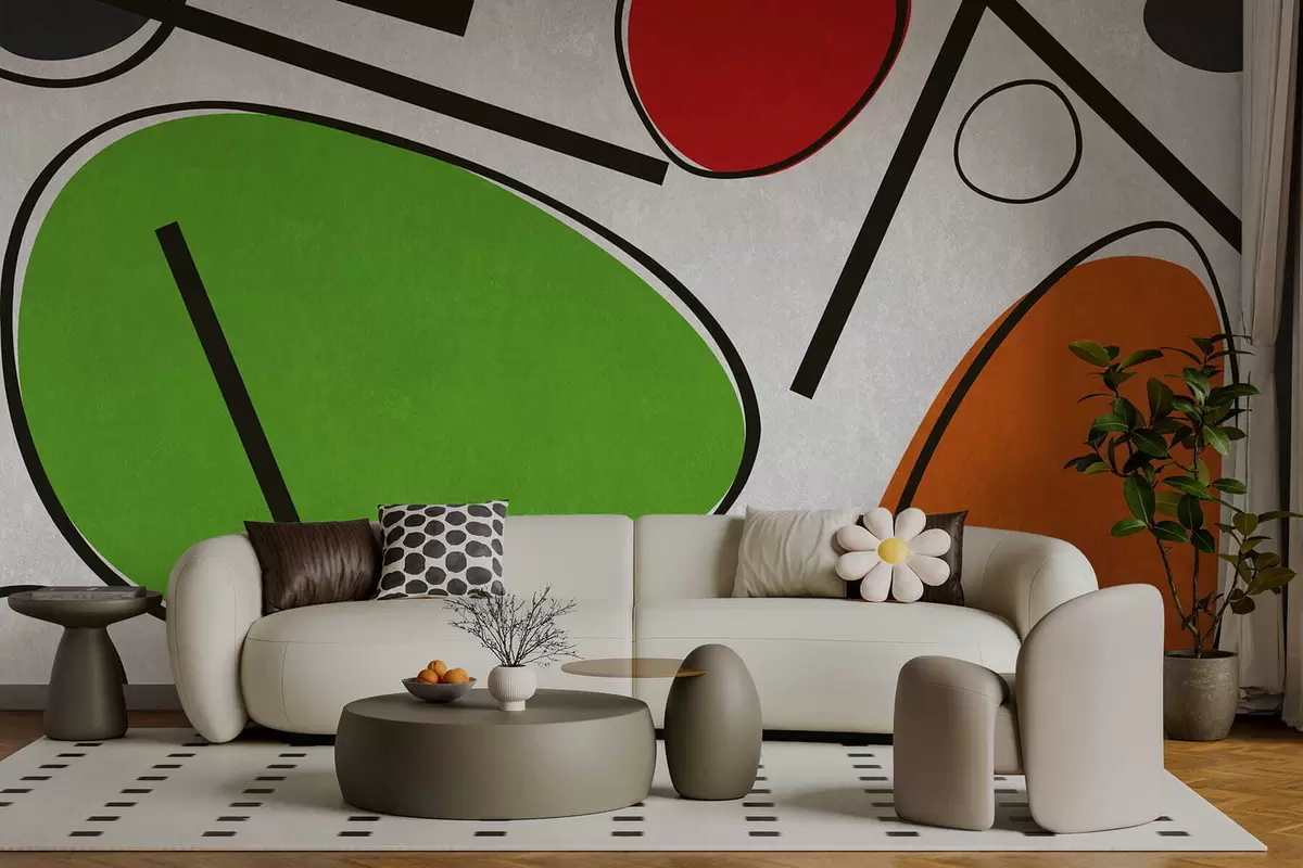 Тапете за зид Апстрактни геометријски облици са линијама и смелим обојеним површинама бр. w05017v1