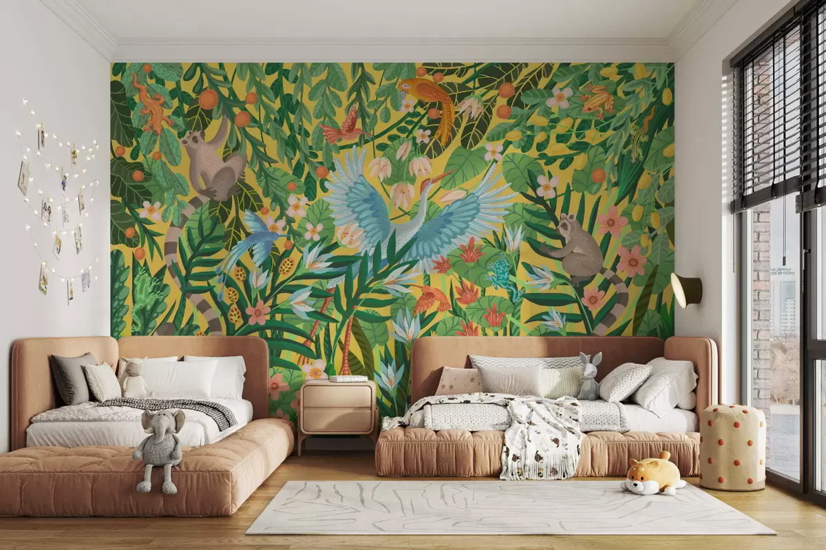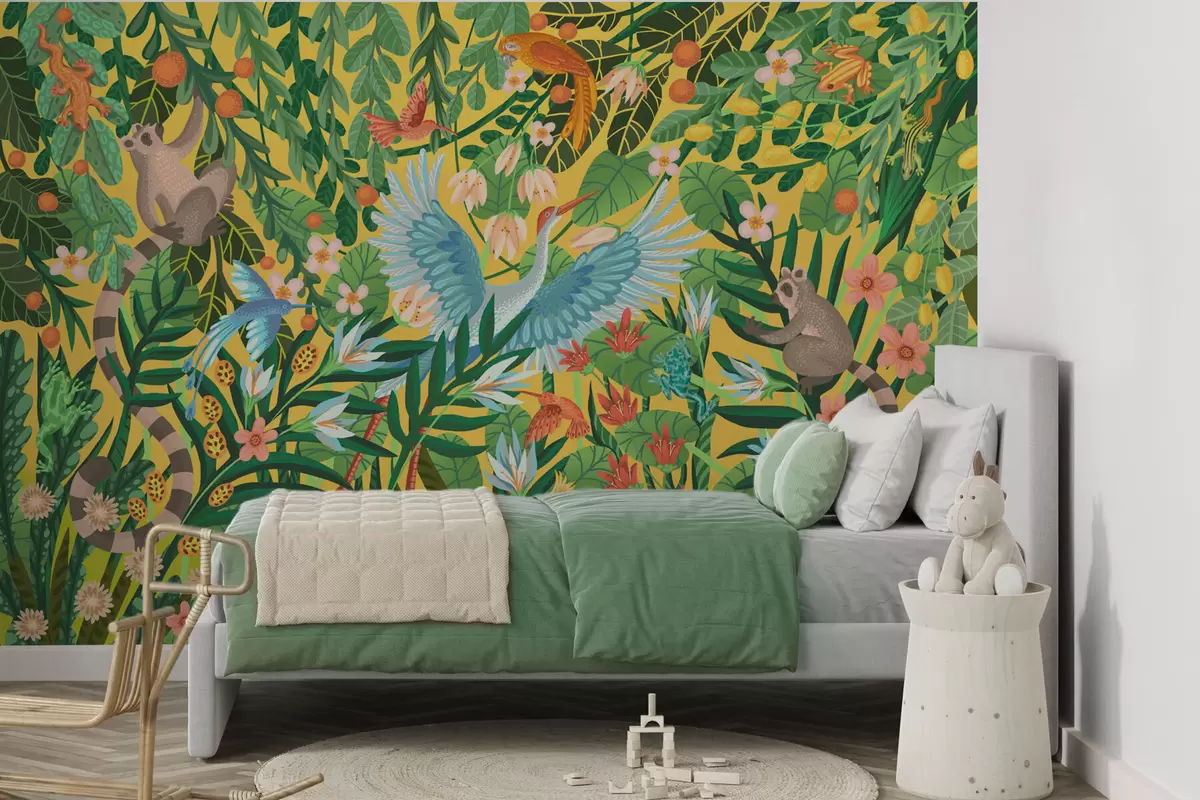 Тапете за зид Светла сцена са птицама и животињама у густом зеленилу бр. w05024v1