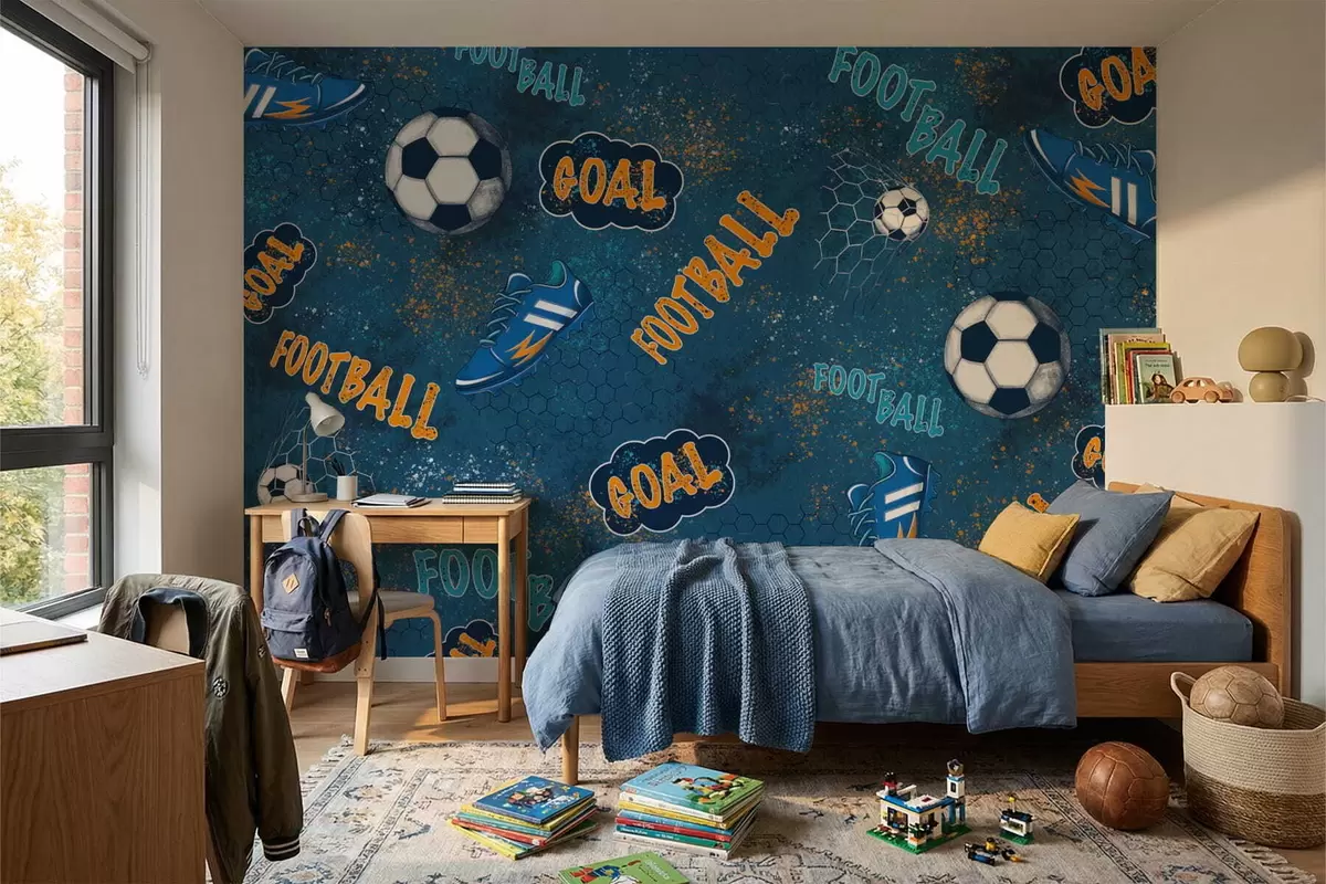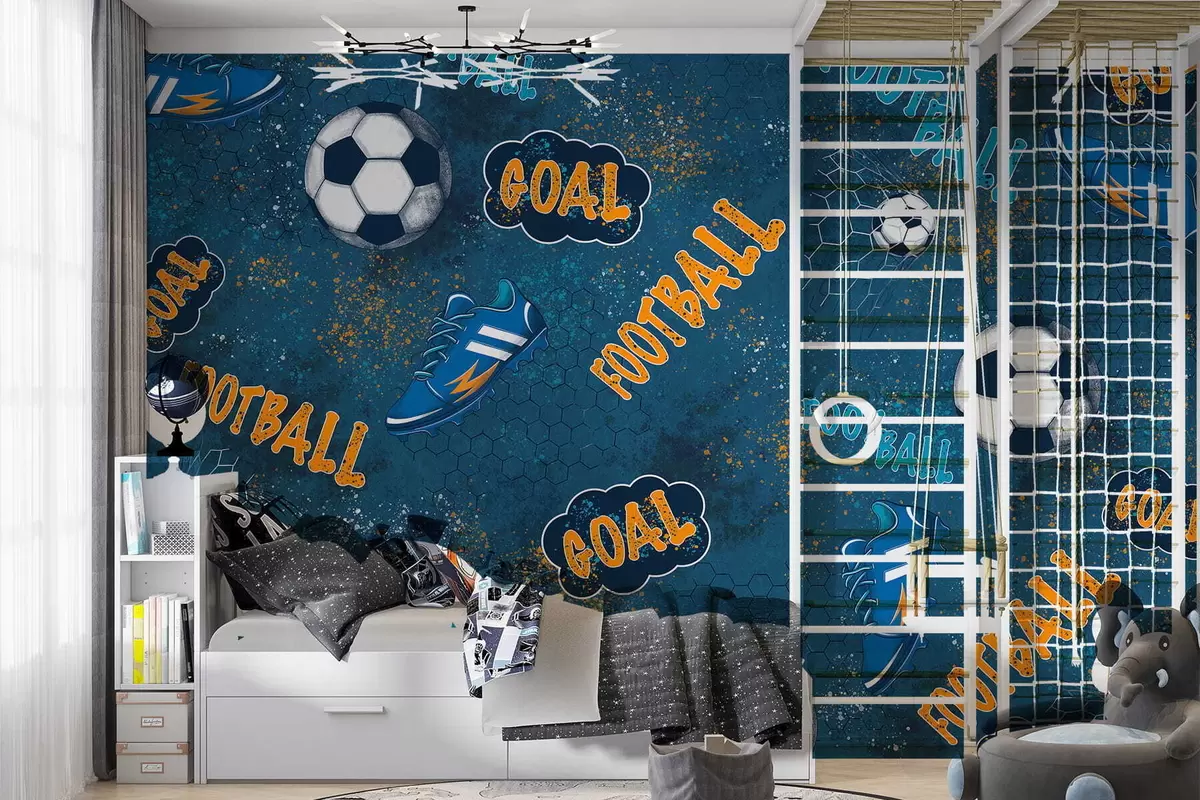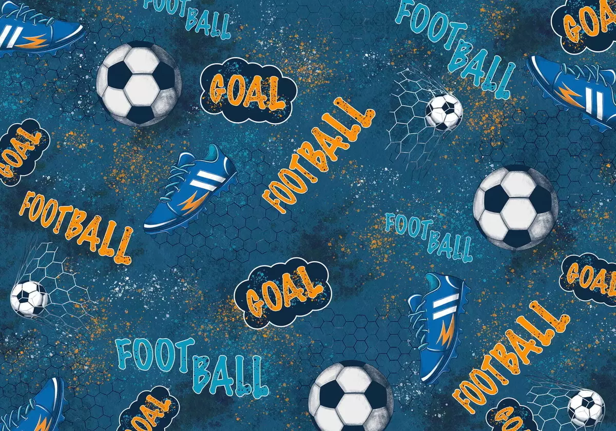 Тапете за зид Дечји шаблон са лоптама, ципелама и спортским речима бр. w05037