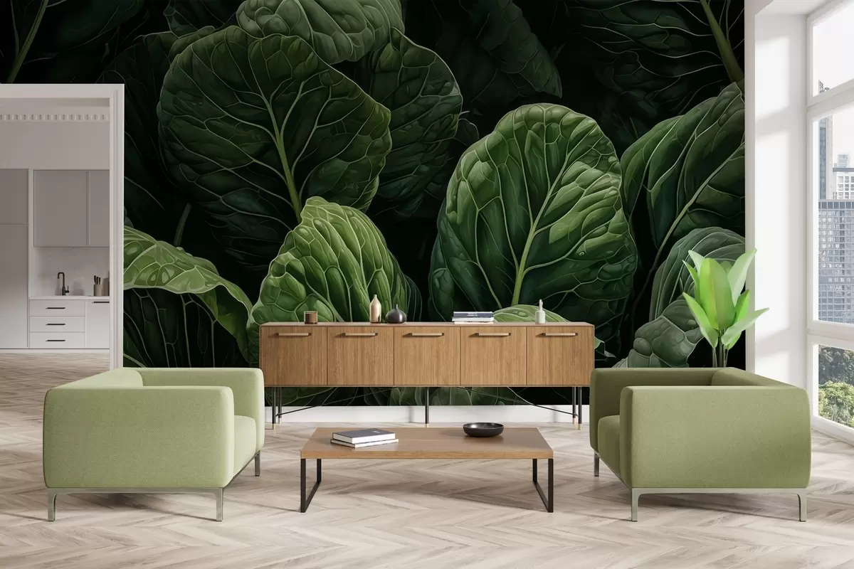 Тапете за зид Разиграно зелено лишће бр. w05043