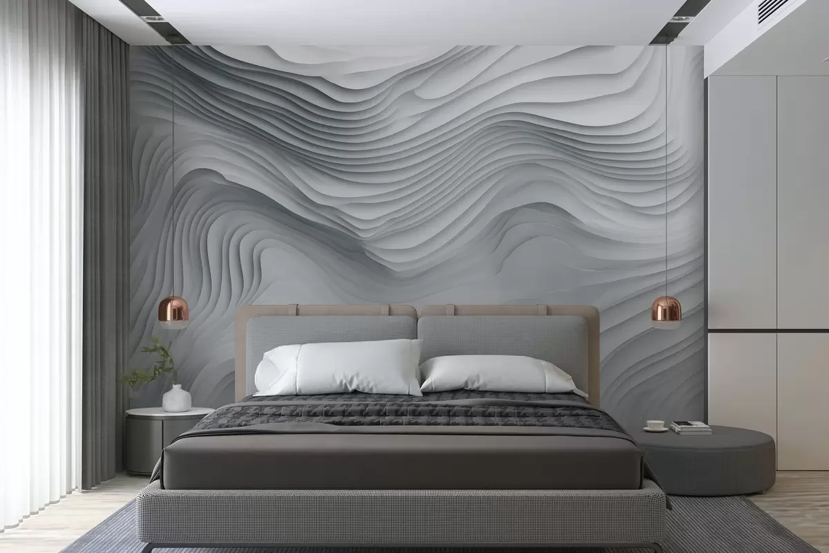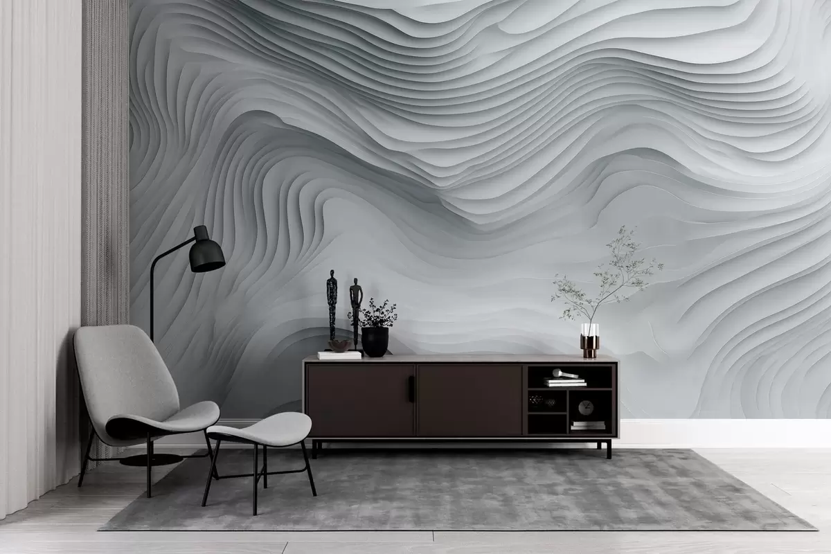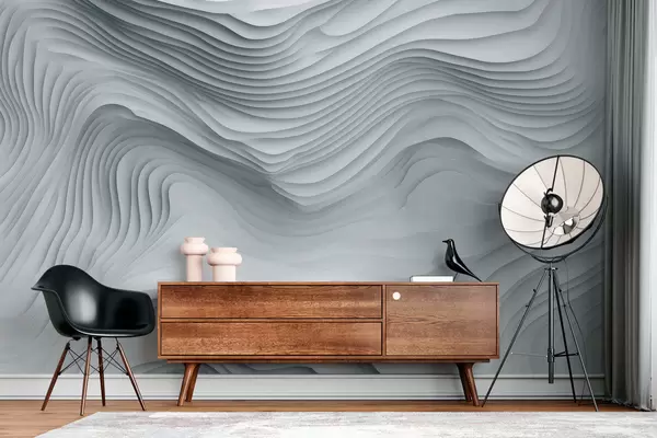 Тапете за зид имитација волуминозних степенастих рељефа у сивим тоновима бр. w05061