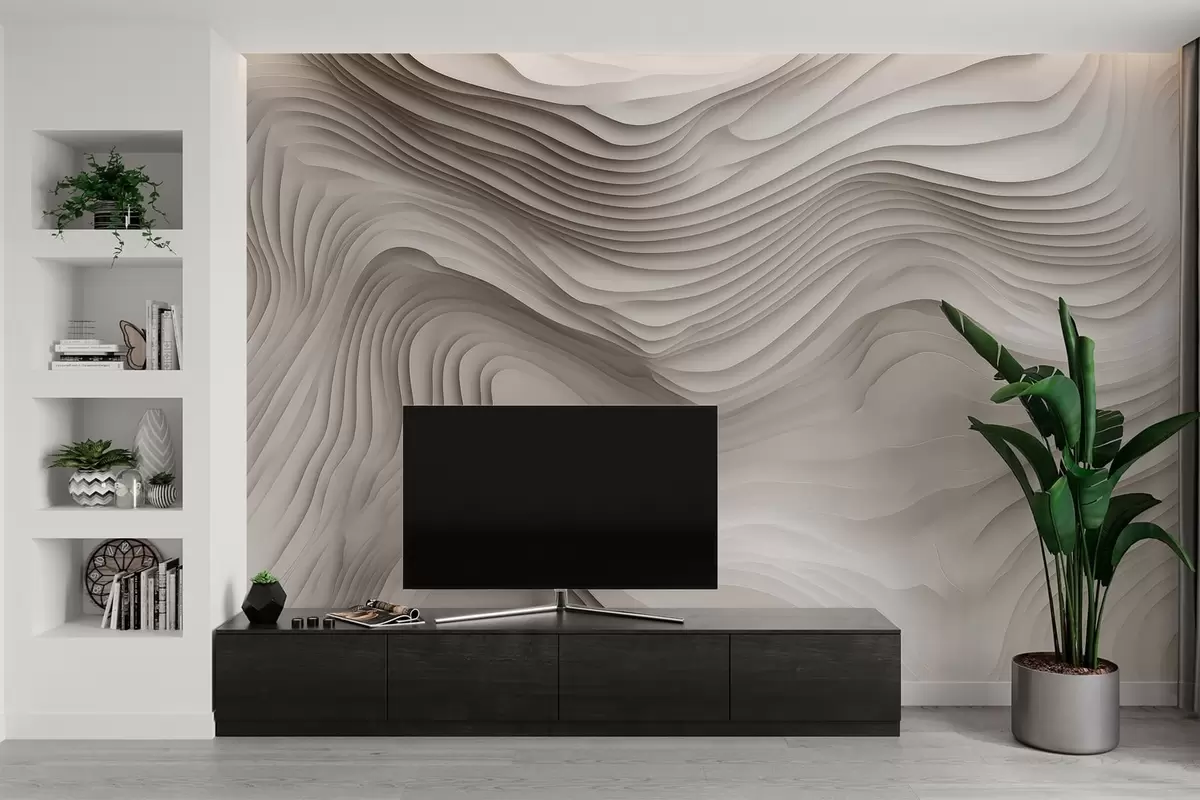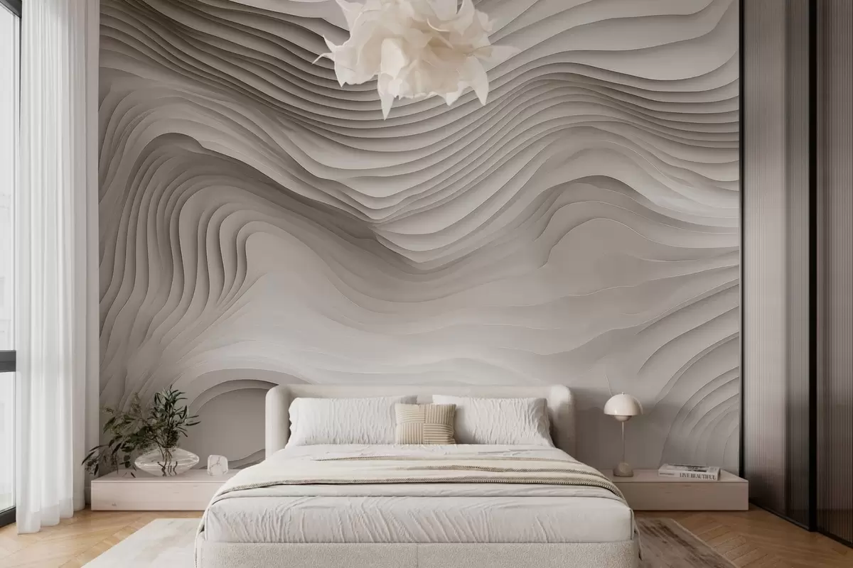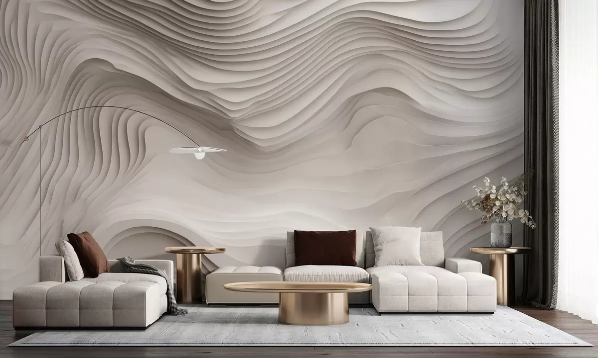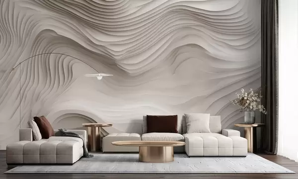 Тапете за зид имитација волуминозних степенастих рељефа у беж тоновима бр. w05061v1