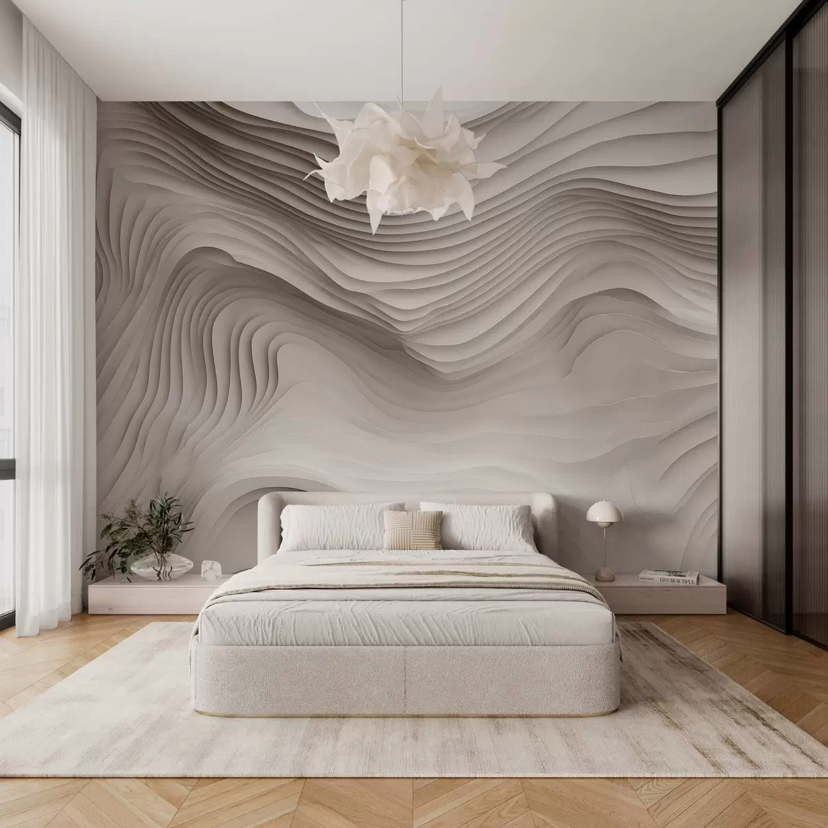 Тапете за зид имитација волуминозних степенастих рељефа у беж тоновима бр. w05061v1