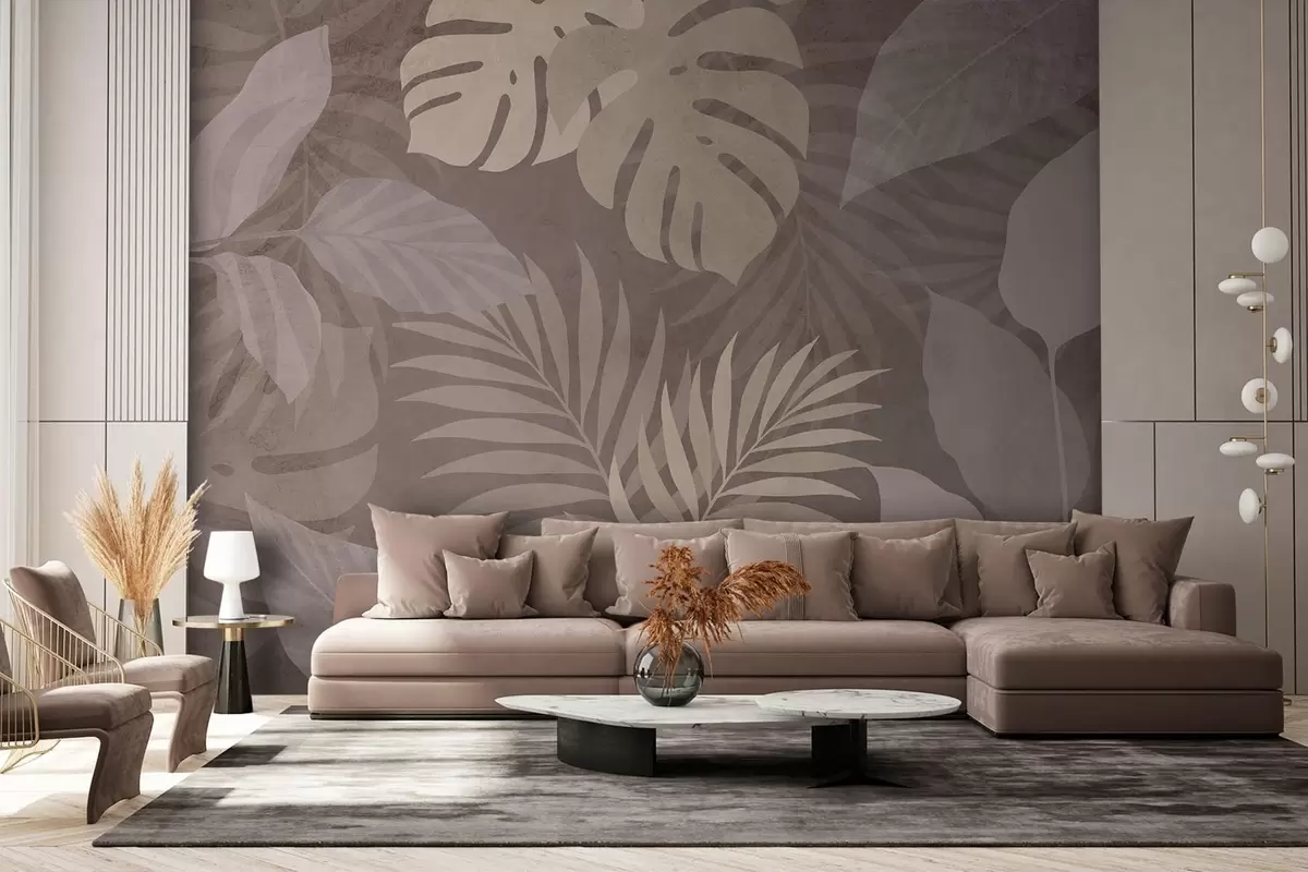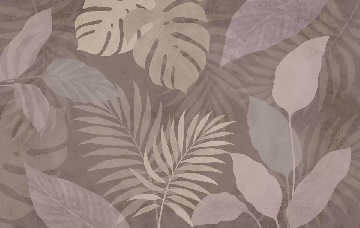 Тапете за зид текстурирано тропско лишће на чоколадној позадини бр. w05063v2