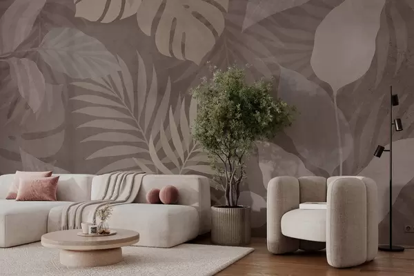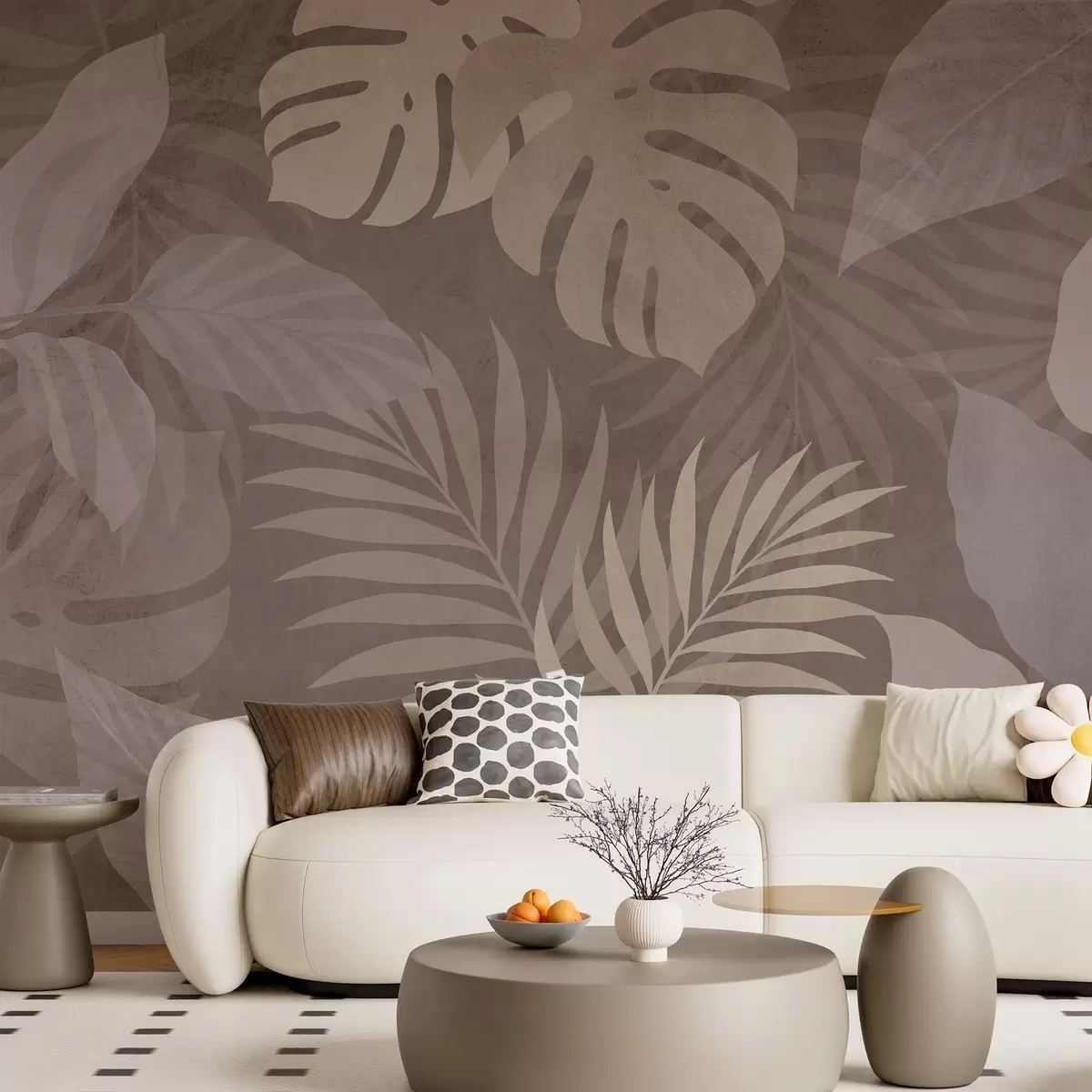 Тапете за зид текстурирано тропско лишће на чоколадној позадини бр. w05063v2