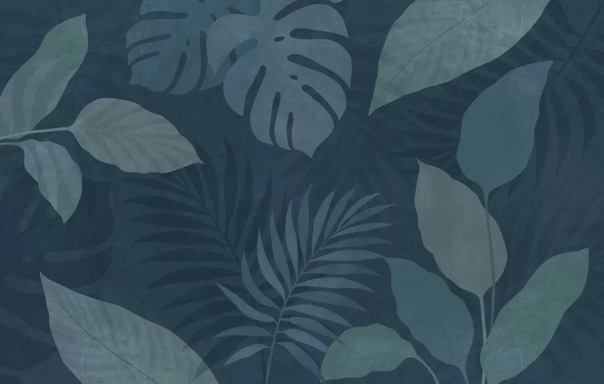 Тапете за зид текстурирано тропско лишће на тамноплавој позадини бр. w05063v3