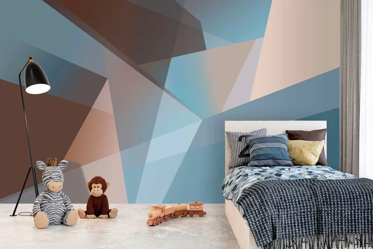 Тапете за зид апстрактна геометрија у плавим и браон тоновима бр. w05064