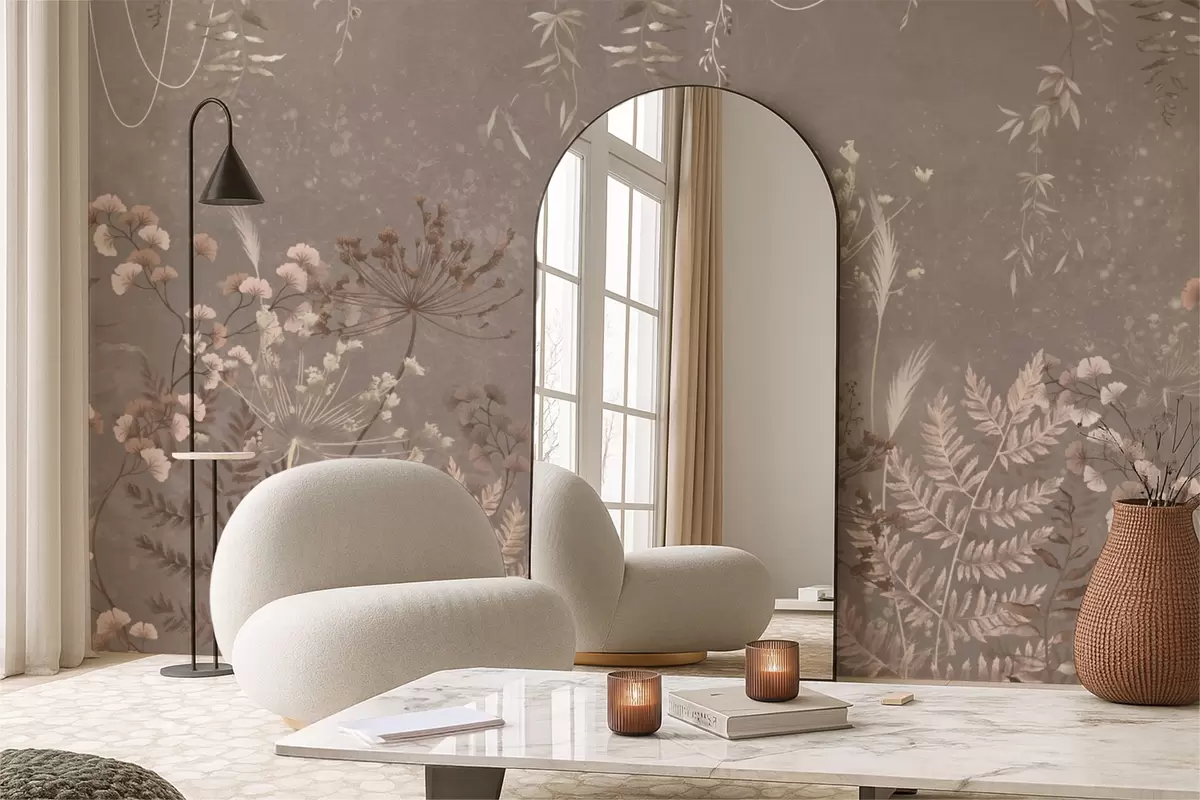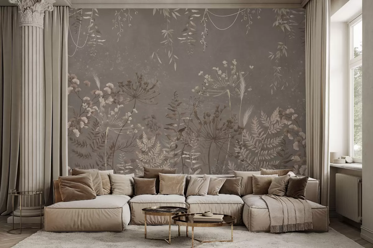 Тапете за зид Светли ботанички узорак са цвећем и лишћем бр. w05092v1