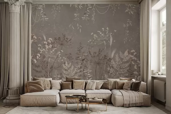 Тапете за зид Светли ботанички узорак са цвећем и лишћем бр. w05092v1
