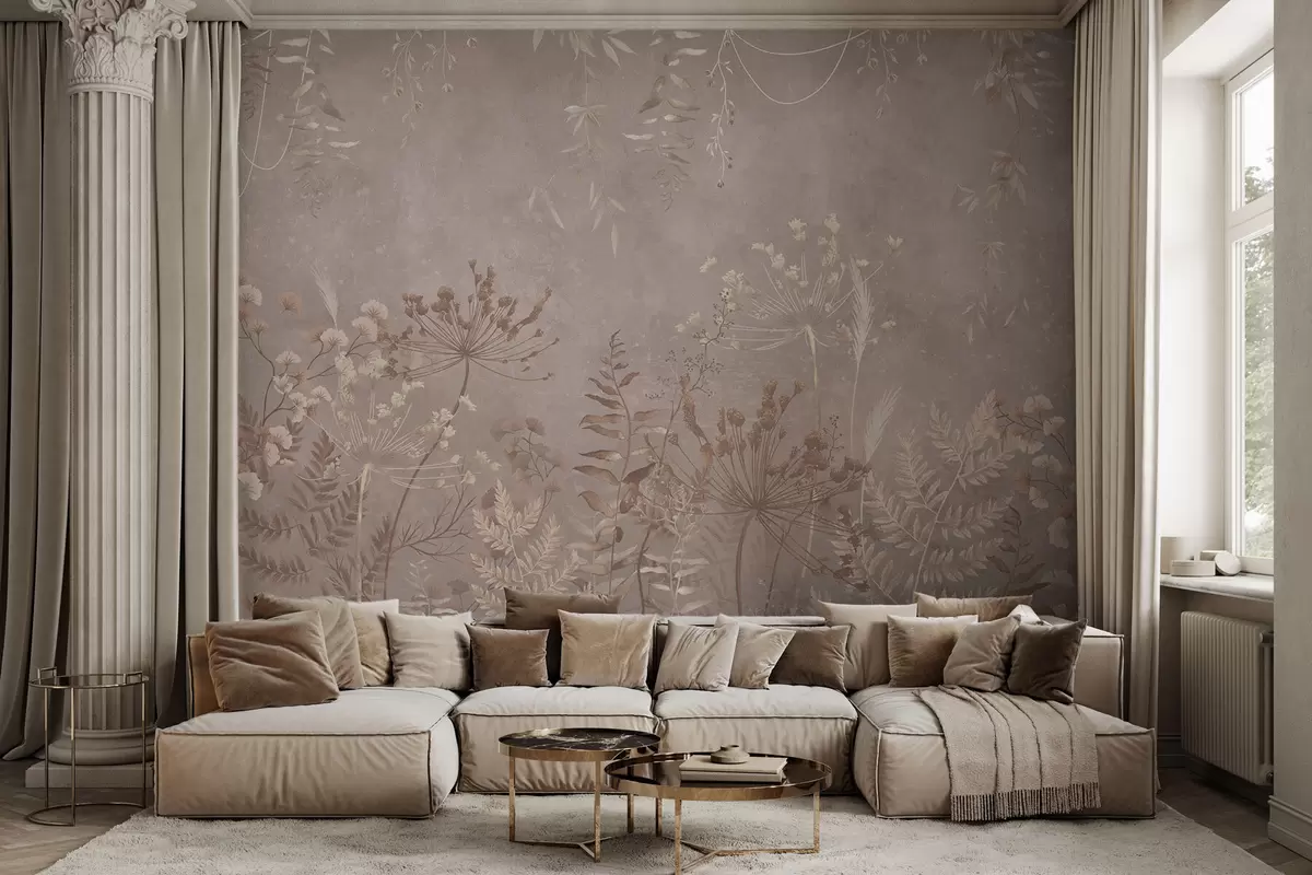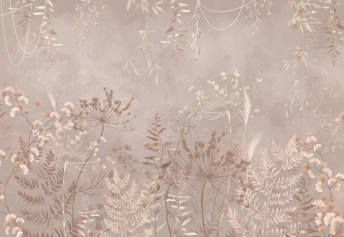 Тапете за зид Меки беж ботанички узорак са дивљим цвећем бр. w05092v2