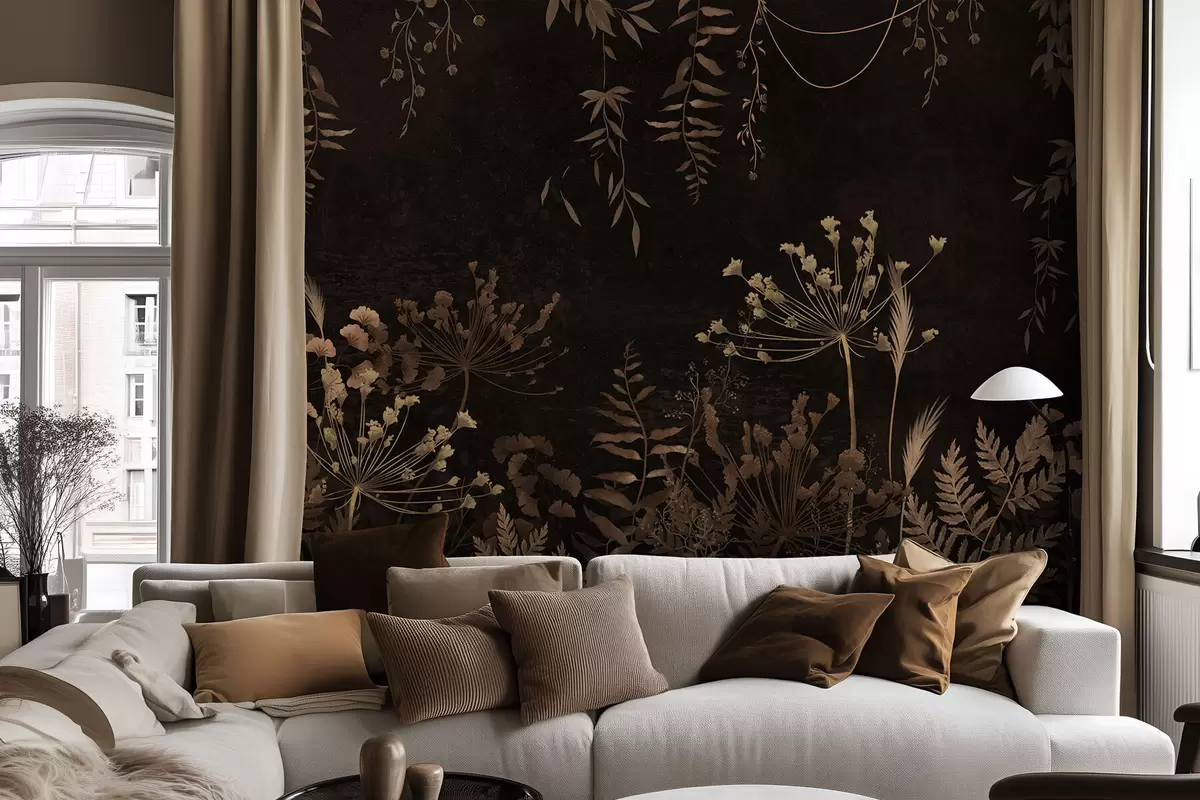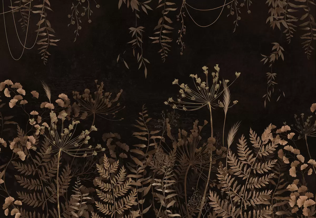 Тапете за зид Тамни ботанички узорак са цвећем и травама бр. w05092v3
