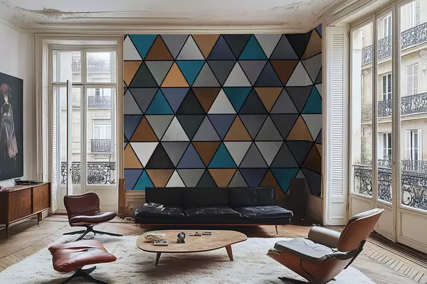 Тапете за зид Троугласти геометријски узорак у плавим и топлим тоновима бр. w05095